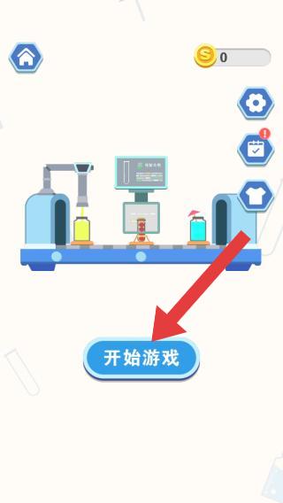 1、画面呈现的是游戏初始界面,展示了实验制作的场景,玩家需点击“开始游戏”进入场景,也能点击设置、皮肤的图标。