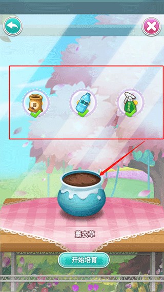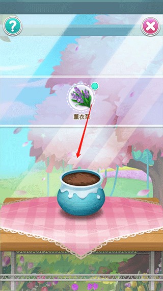 2、把植物种子拖进去,这里拿薰衣草来举例,将它拖到盆栽里。