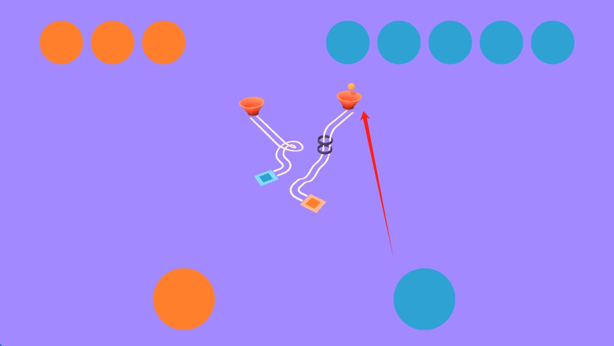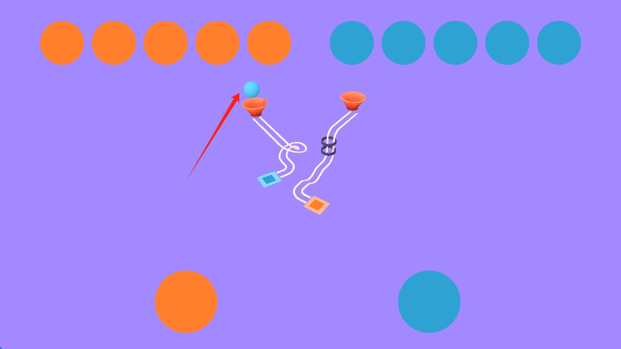2、接下来在游戏操作场景里,按照箭头提示操控橙色小球,避开障碍并成功抵达指定地点,然后点击选中橙球。