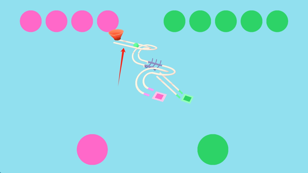 3、进入后续的游戏操作场景后,按照箭头给出的提示,操控绿色小球,沿着复杂的路线行进,完成这款休闲游戏的挑战,点击选择绿色小球即可。