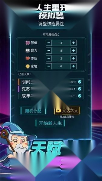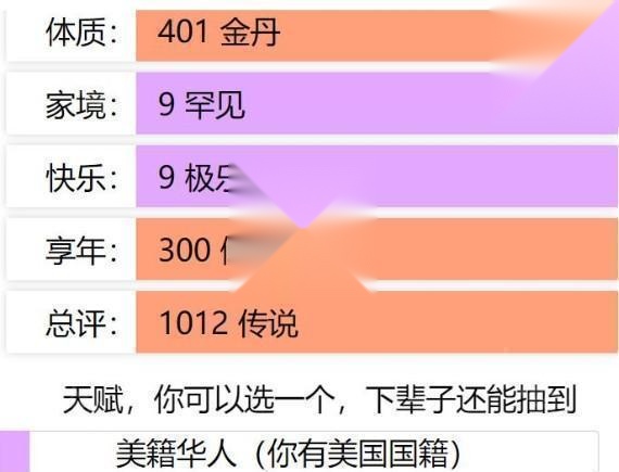 1、初始属性为随机获取,涵盖天赋、体质、家世、智力、美貌等多种不同属性