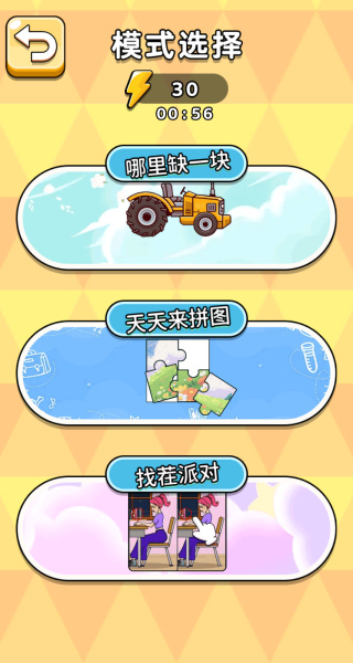 2、游戏内设有多种可供选择的模式,像“哪里缺一块”“天天来拼图”“找茬派对”等都包含其中,你能够依据自身喜好进行自由挑选。