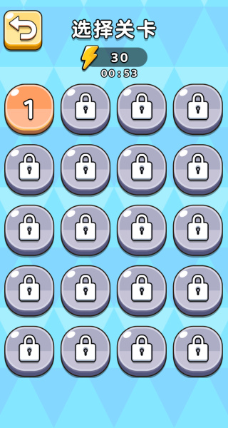 3、我选用了“哪里缺一块”的模式,进入该模式后得挑选关卡。第一关能直接开始游玩,剩下的关卡则需要解锁才能玩。
