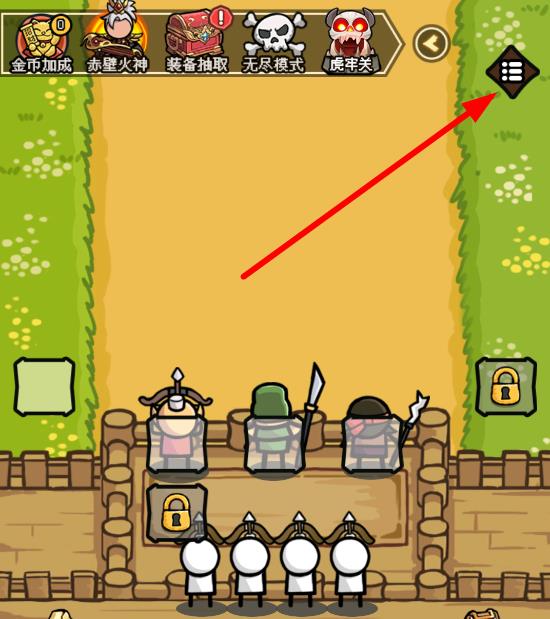 1、在本站完成“好三国大乱斗”的操作后打开;点击下方箭头指向的三条横线图标进入;
