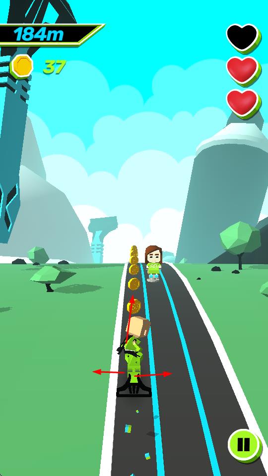 2、在游戏进程中,注意观察赛道上的其他角色,你可以通过恰当的操作与他们进行互动,与此同时,要不断收集金币,以此来提高游戏分数。