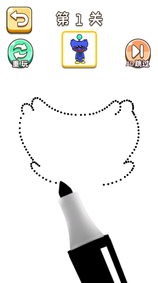 4. 如下图所示,在一笔填色画的关卡里,玩家需通过一笔完成涂色任务,该关卡无时间限制,玩家可进行多次尝试。