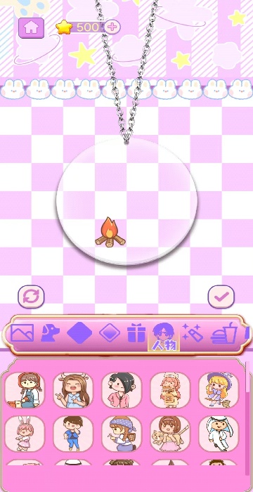 3、接下来我们要开始制作漂亮的玻璃项链啦,你可以挑选页面下方的贴纸,把它们装饰在透明玻璃上,打造出最精美的项链。