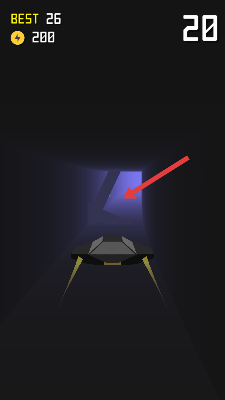 1、操控飞碟在隧道中飞行时,需朝着紫色出口的方向推进,同时要避开路径上的障碍,注意切勿发生碰撞。