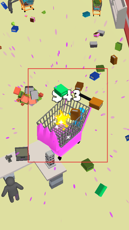 4、不断收集各类物品,直至达成关卡设定的目标,最后系统会展示购物车里所有物品的总价值,让你尽情体验在超市中畅快收集、疯狂购物的乐趣。