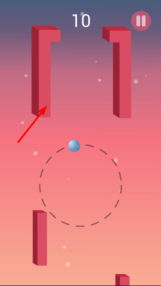 2、随着障碍物数量增加、移动速度变快,要专注盯着屏幕,迅速调整小球位置来躲避,碰到道具时要主动去触碰以获得帮助。