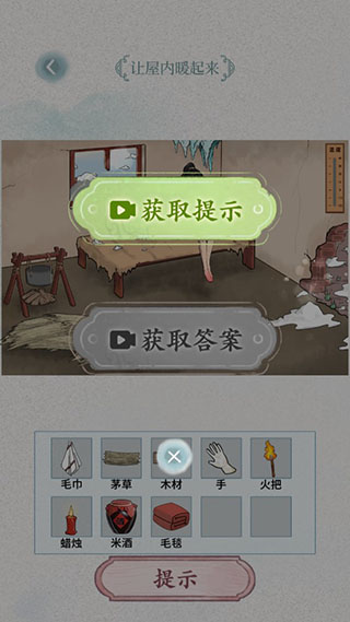 玩家在游戏里遇到解决不了的难题时,可点击屏幕下方的提示按钮,点击后就能直接获取答案,无需观看广告。