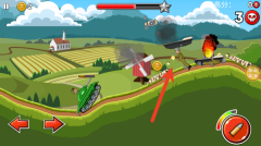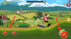 2、当在关卡里碰到敌人或者障碍时,你可以手动拖动坦克的炮管,以此来调整导弹的发射角度和力度,借助抛物线的轨迹,要么越过地形,要么直接击中目标。