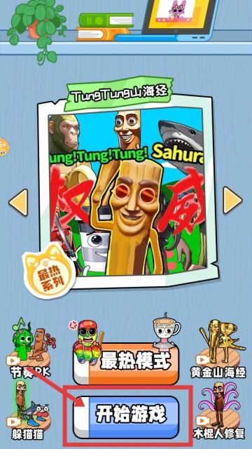 1、进入游戏界面后,能看到多种模式选项,点击界面下方的“开始游戏”按钮,就能开启TungTung山海经的冒险挑战,探索充满趣味的关卡。