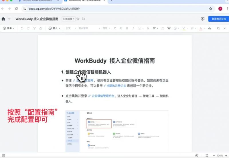 如果你想在通勤路上用手机遥控办公室电脑干活,可以配置企业微信接入,最快1分钟完成。